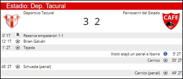 Superó por 3 a 2 a Ferro de Rafaela con goles de Brian Galván a los 12 del primer tiempo, Matías Tejeda en el inicio de la segunda etapa, cerrando la cuenta Nahuel Schueda de penal a los 45 del complemento.