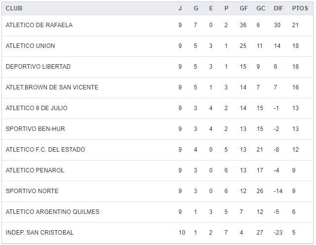 – Libertad 0 – 9 de Julio 0.