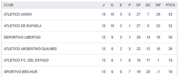 Terminado el Torneo Clausura de Reserva de la Liga Rafaelina de Fútbol, Unión y Atlético le darán forma a la Final por el Absoluto. Así se desprende de la clasificación final en donde el Bicho Verde se quedó con el primer certamen y la Crema con el que culminó en estos días.