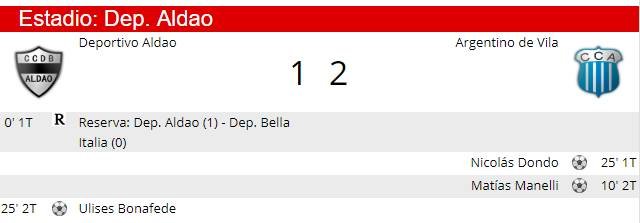 El elenco del Deportivo Aldao no pudo con Argentino de Vila y quedó al margen de la Final por el ascenso. El equipo local sabía que tenía que revertir la derrota sufrida en la ida y que el margen era mínimo por lo que la expectativa se mantenía bien alta.