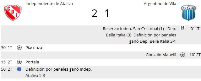 La apertura del partido llegó por intermedio de Piacenza, quien no falló para adelantar al local cuando transcurrían 30 minutos del primer tiempo. Luego Manelli, a los 10 minutos del complemento le puso suspenso a la tarde con el empate transitorio. Sin embargo, apenas cinco minutos después, su goleador, Portela volvió a hacer vibrar a Ataliva con el 2 a 1 que terminaría siendo definitivo.