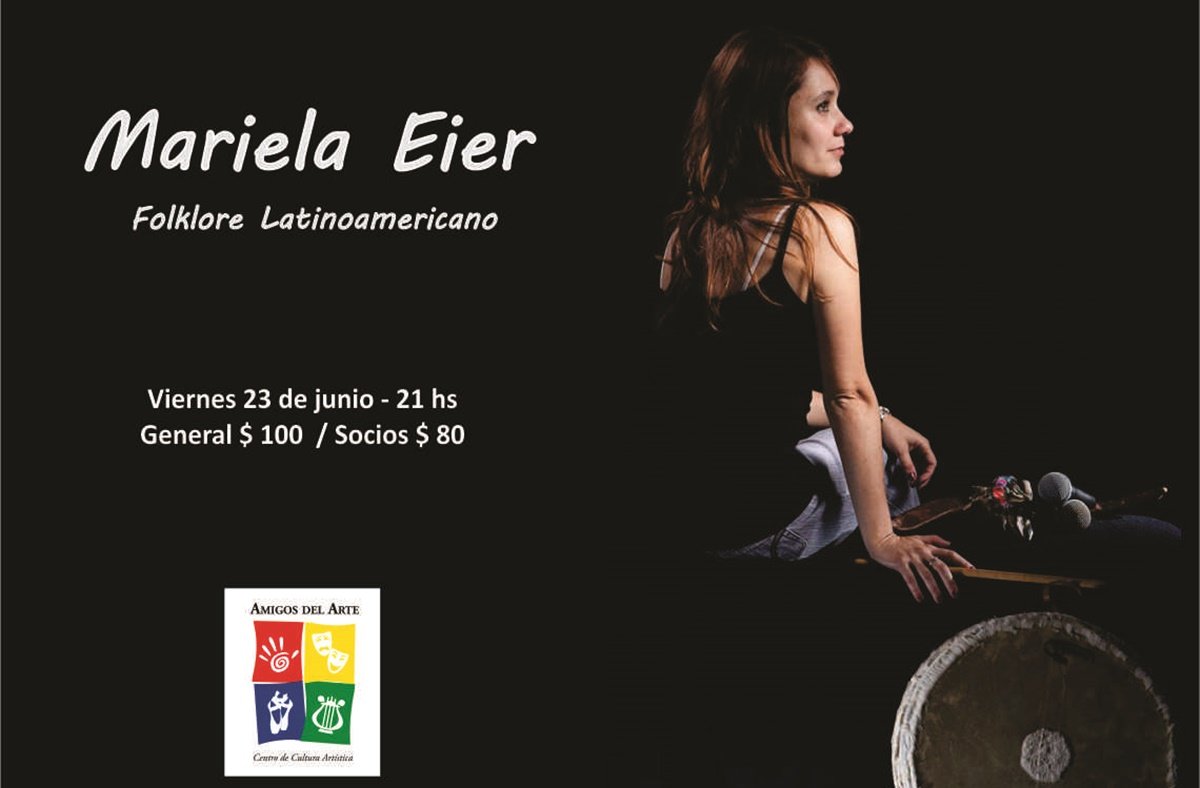 El Centro de Cultura Artística «Amigos del Arte» anunció la presentación de la folclorista Mariela Eier de la ciudad de Rafaela, quien actuará desde las 21 de hoy viernes en la sala «Juan Bosch».