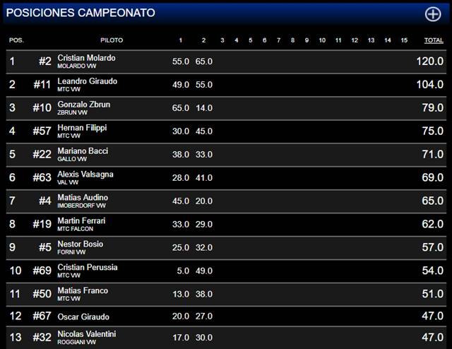 Segunda Pre Final: 1) Luis Kunz Pr: 79,379 Km/h, 2) Jorge Lovera, 3) Adriel Viano, 4) Juan C. Boscatti, 5) Jorge Walker, 6) Nicolás Scandalo, 7) Eugenio Mautino, 8) Fabián Monti.