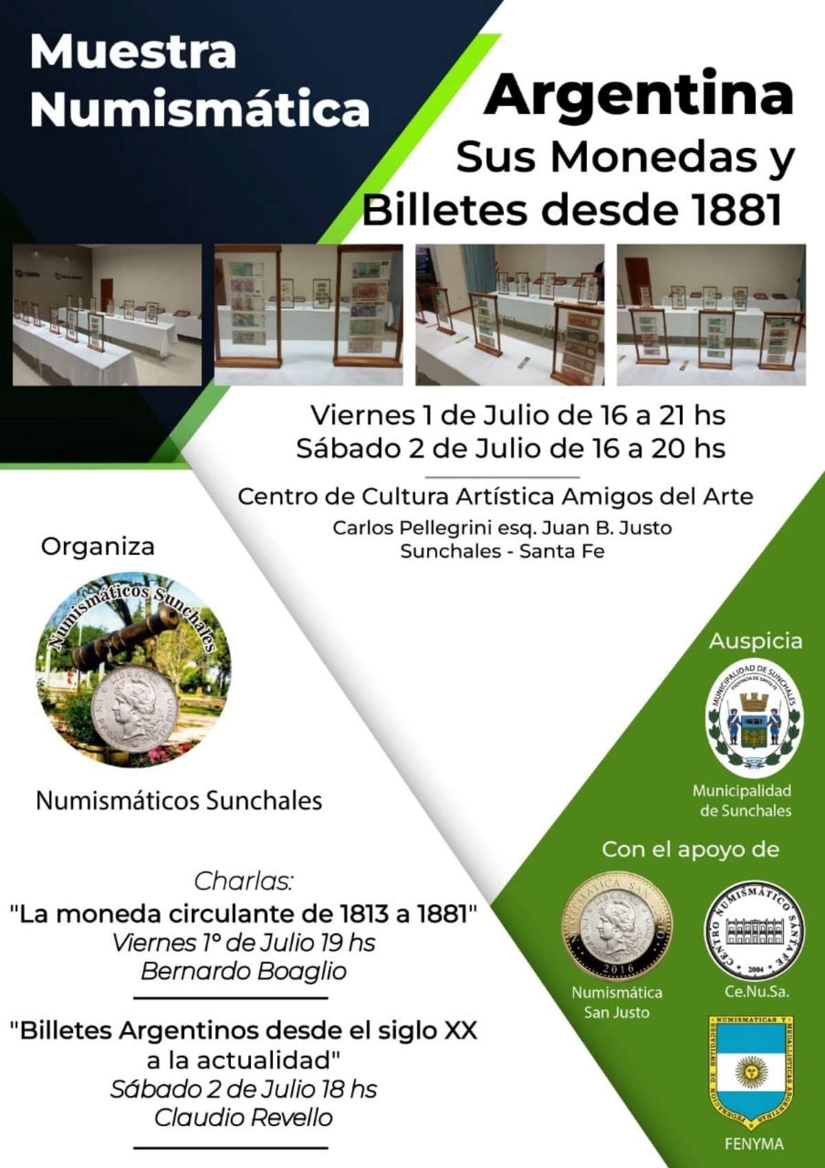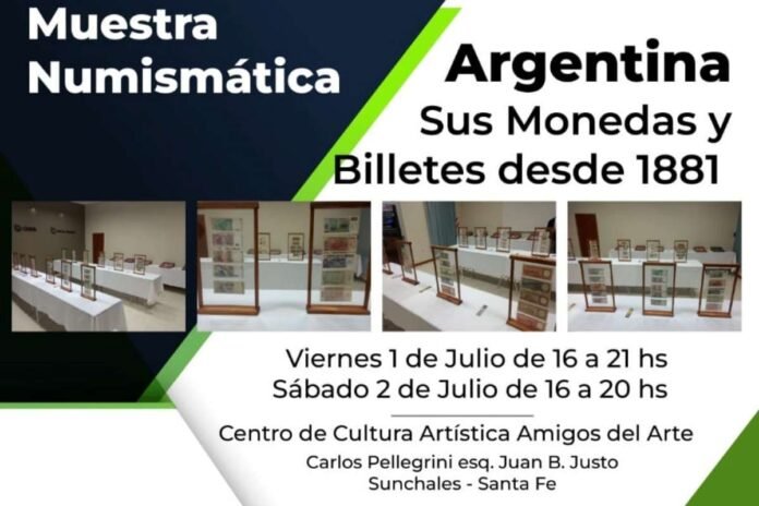Un evento sin precedentes en la ciudad tendrá lugar entre viernes y sábado, desarrollándose el mismo en el Centro de Cultura Artística «Amigos del Arte». Se trata de una muestra numismátia denominada: «Argentina, sus monedas y billetes desde 1881».