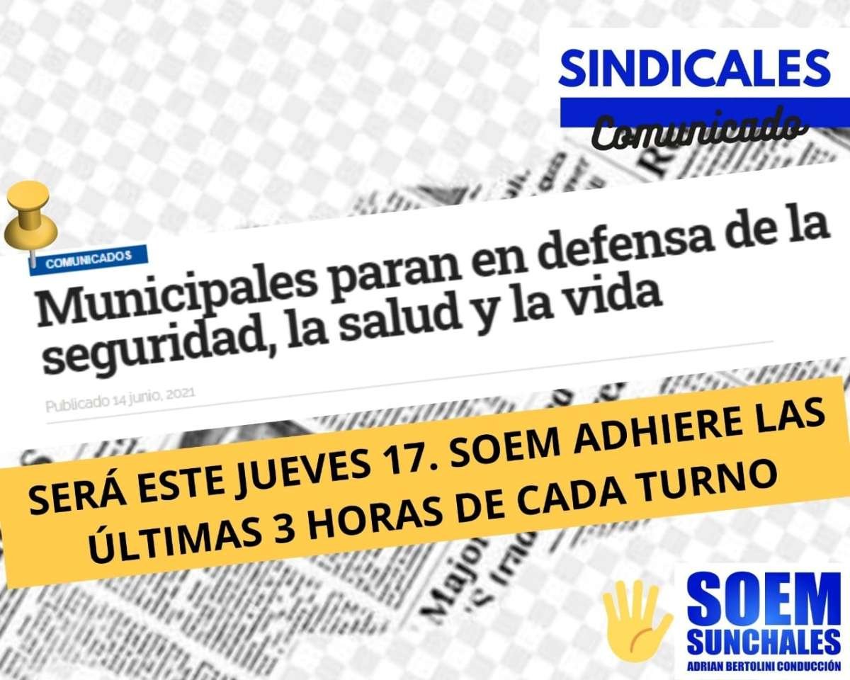 Interés general Municipales mañana pararán tres horas por turno 16/06/2021 Por Redacción SH 26 Compartir FacebookTwitterWhatsAppEmail El Sindicato de Obreros y Empleados Municipales confirmó que este jueves se sumará a la medida de fuerza provincial en reclamo de vacunas para sus afiliados. A nivel local, la adhesión será de las últimas tres horas de cada turno. TemasparoSoem Compartir FacebookTwitterWhatsAppEmail Relacionadas Festram, el paro y su impacto local 11/03/2026 Festram sin acuerdo y con dos jornadas de paro 09/03/2026 LRF: La Liga se suma al paro del fútbol 26/02/2026 Ultimas noticias Bomberos: La «Bestia» ya puede circular 14/03/2026 A 138 años de la escuela «Florentino Ameghino» 14/03/2026 Amenazas y daños en Sunchales: quedaron libres los tres imputados 14/03/2026