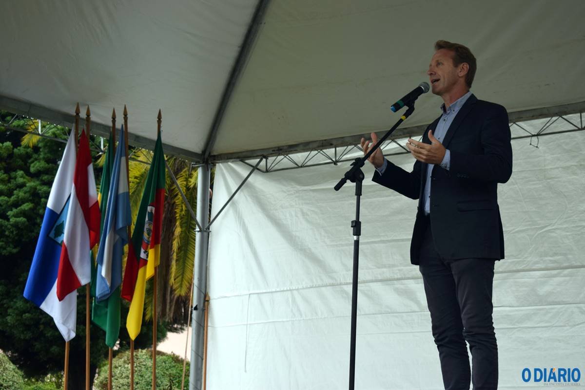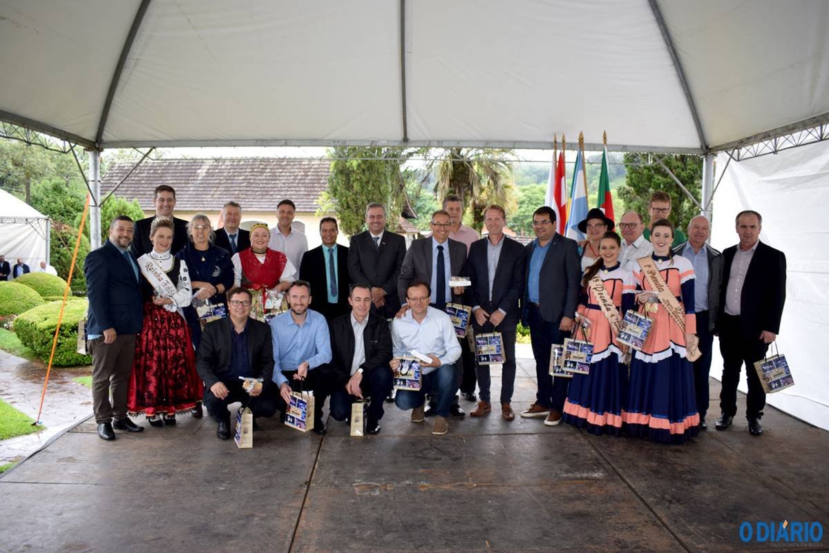 Entre as autoridades presentes, representantes das duas cidades e o presidente da Aliança Cooperativa Internacional, o argentino Ariel Guarco.