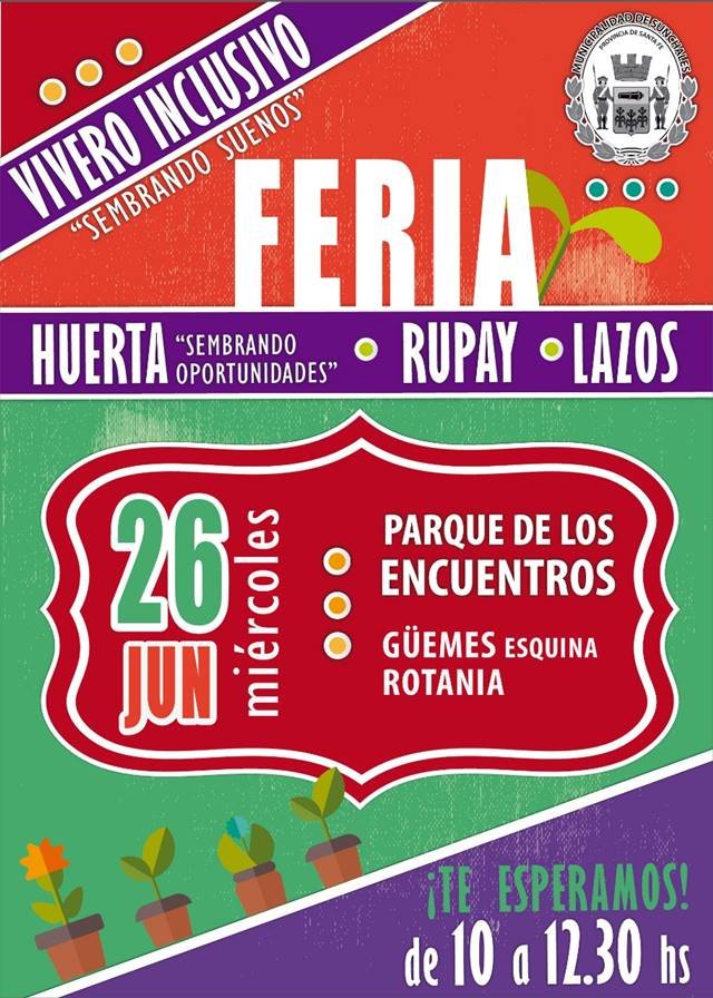 La Municipalidad de Sunchales invita a una nueva feria organizada por el Vivero Inclusivo «Sembrando Sueños», la Huerta “Sembrando Oportunidades” y Lazos. Será mañana miércoles 26, de 10 a 12.30, en Parque de los Encuentros (Güemes, esquina Rotania).