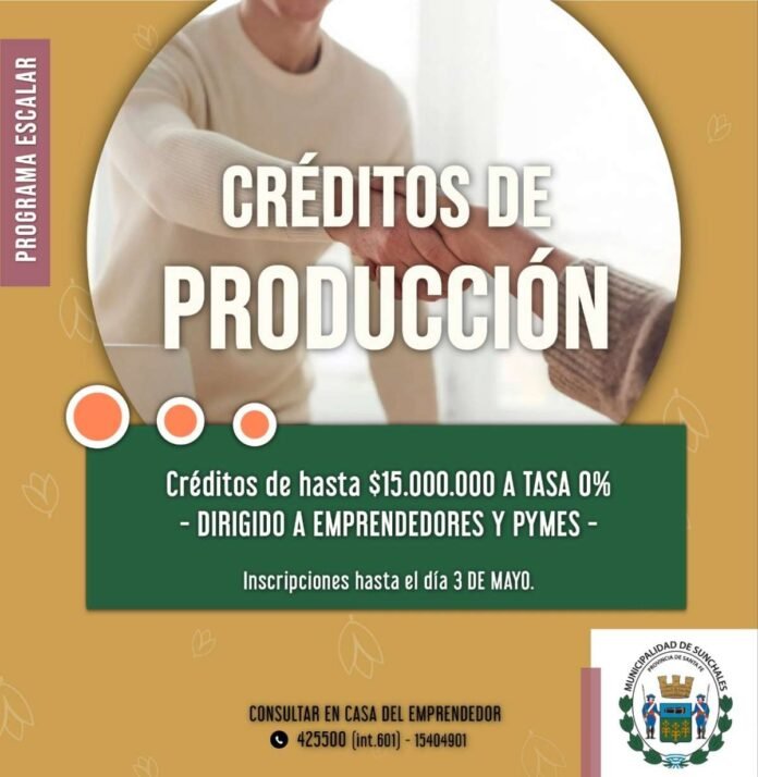 La Municipalidad de Sunchales informa que entra en vigencia el Programa Escalar, impulsado por la Nación, en el cual se podrá acceder a créditos que van de $3.000.000 hasta $15.000.000 a tasa cero.