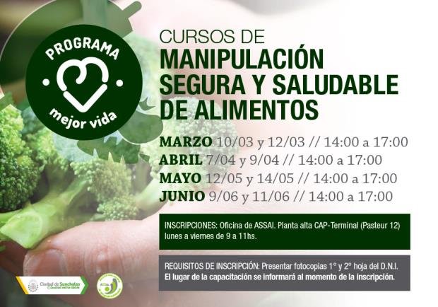 Para inscripciones o mayor información dirigirse a la oficina de la Agencia Sunchalense de Seguridad Alimentaria, ubicada en la planta alta del CAP – Terminal, de lunes a viernes de 9 a 11.