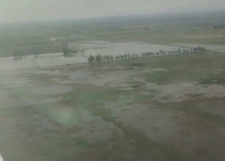 De esta forma se pudo apreciar la grave situación en el sector rural del distrito Sunchales, observando un panorama preocupante ante la gran masa hídrica que rodea al casco urbano y que aún debe escurrir a través de los canales que atraviesan la ciudad.