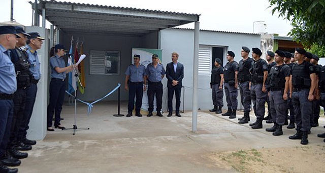 El Intendente Toselli, junto a autoridades policiales, en el acto de inauguración de la sede local del Gat, por entonces Goe.