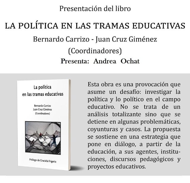 Sociedad Presentarán el libro: «La política en las tramas educativas» 26/06/2018 Por Redacción SH 580 Compartir FacebookTwitterWhatsAppEmail La actividad se desarrollará en el Centro Cultural del colegio «San José» (con ingreso por calle Bolívar 80), desde las 18.30, contando con la presentación de Andrea Ochat. TemasJuan Carlos Giménezlibros Compartir FacebookTwitterWhatsAppEmail Relacionadas La Comarca y su territorio 09/01/2026 Cuando escribir es una necesidad 14/06/2025 Una Comarca gestante de arte 13/01/2025 Ultimas noticias SAT: Alerta Amarillo por tormenta 31/01/2026 Box: Pelea Eliana Orecchia 31/01/2026 Teatro: herramienta poderosa para la reflexión y expresión social (III) 31/01/2026