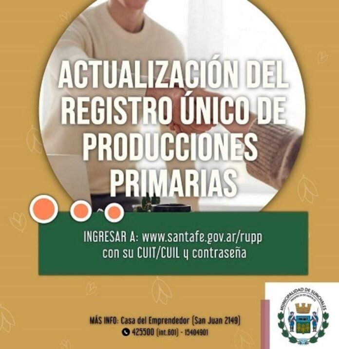 (Por: Prensa Municipalidad) – La Municipalidad de Sunchales informa a los productores primarios de la provincia de Santa Fe, que desde el día 15 de Junio deberán realizar una nueva actualización en el Registro Único de Producciones Primarias (RUPP).