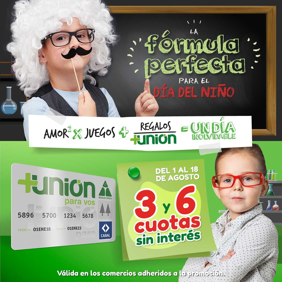 Tarjeta +Unión los invita a beneficiarse con la Promo Día del Niño 2019, “la fórmula perfecta”, para que nuestros pequeños tengan un día inolvidable.