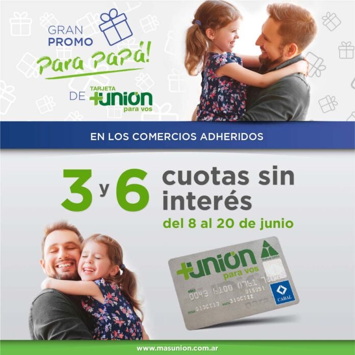 Todo nuestro amor y los mejores regalos ”Para Papá” en 3 y 6 cuotas sin interés, del 8 al 20 de junio en todos los comercios adheridos a la promo.