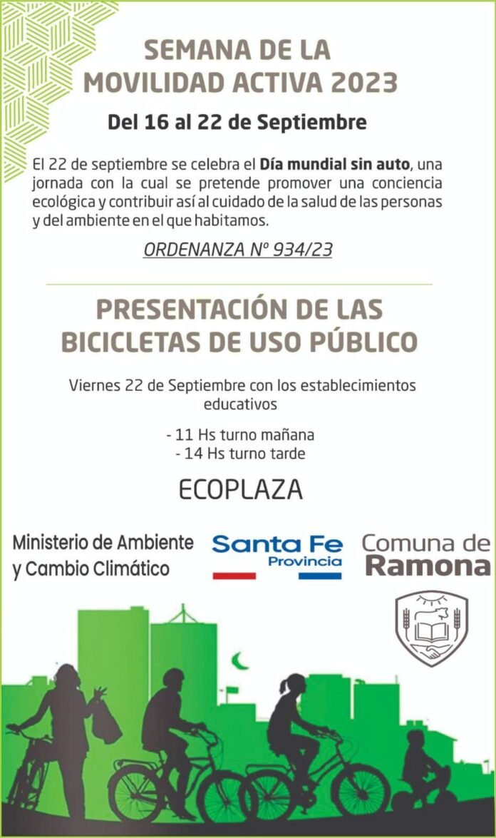 La Comuna de Ramona, en el marco de su acción climática, adhiere a la iniciativa y, por dicha razón, reduciendo el uso de la maquinaria a la indispensable para la prestación de servicios de carácter esencial e invitando a cada uno de los establecimientos educativos de la localidad a promover la propuesta entre los alumnos y sus familias, evitando el uso de vehículos motorizados para trasladarse desde sus domicilios hacia los edificios escolares y a la inversa.
