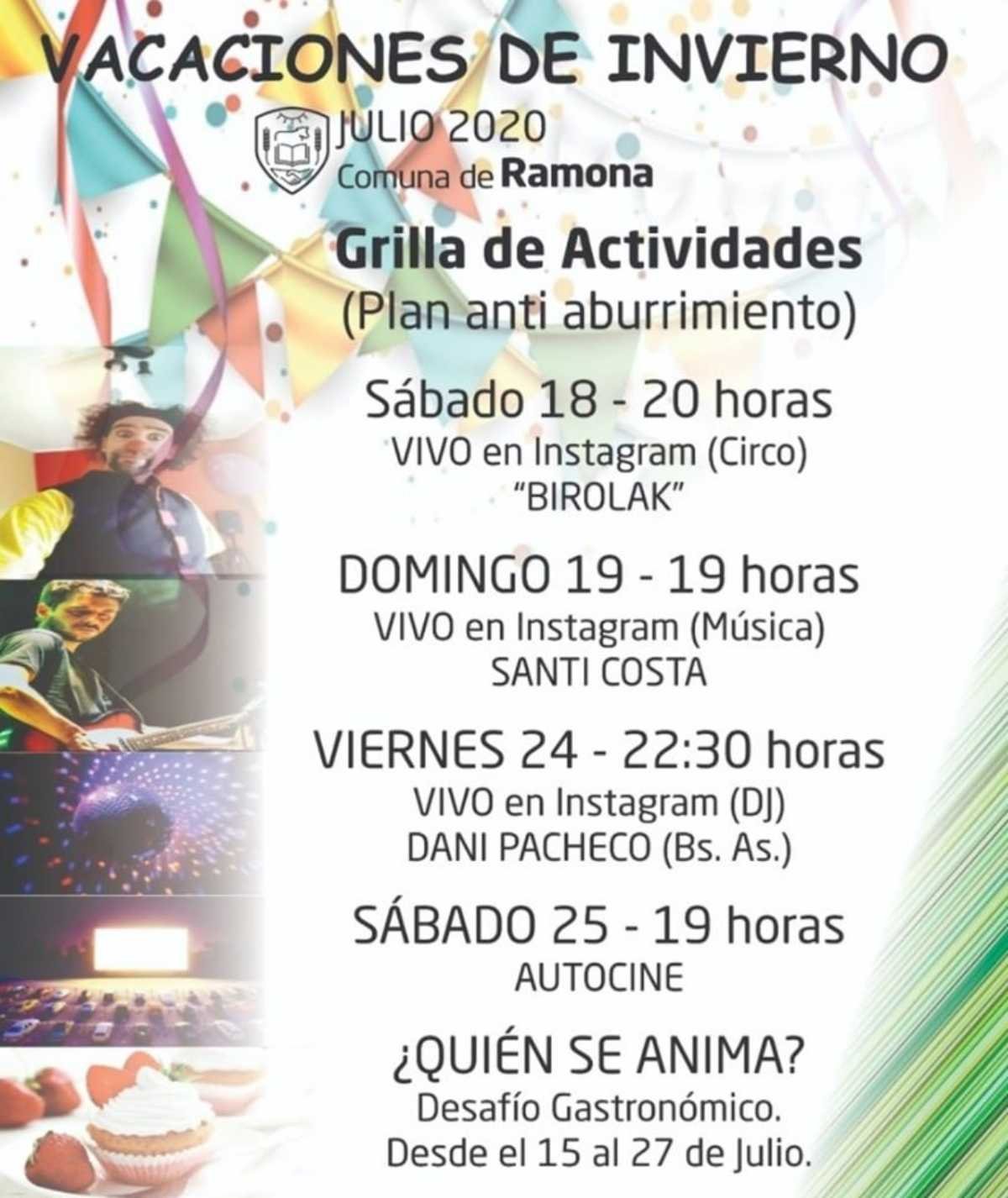 A través de la modalidad virtual, el programa estipula presentaciones musicales, shows artísticos y espectáculos circenses dirigidos a distintas edades de ramonenses para su entretenimiento y diversión.
