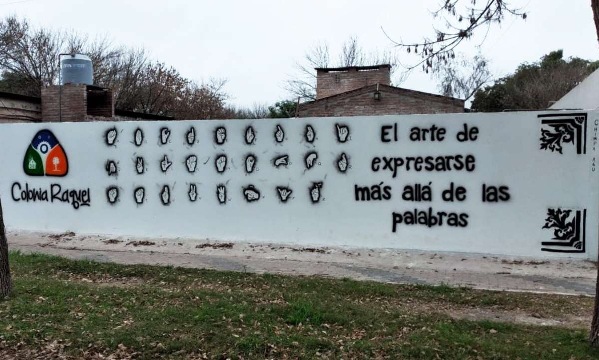Junto a un grupo de jóvenes de la localidad de Humberto Primo, se pintó el abecedario de señas para sordomudos.