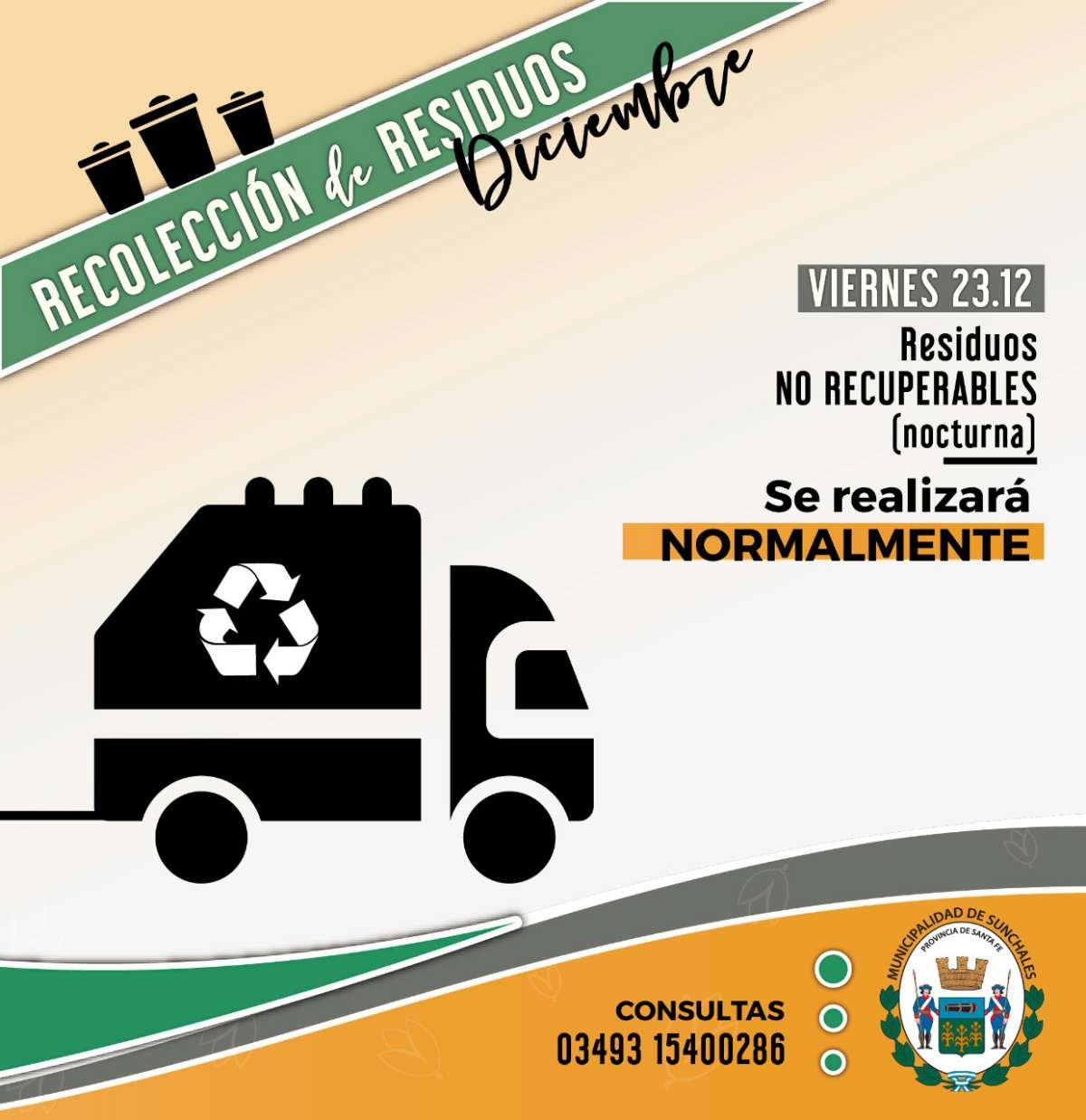 El Municipio informó que en el día de hoy viernes, la recolección de residuos no recuperables (nocturna) se realizará de manera normal.