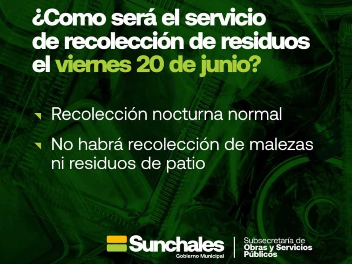 El Municipio informó cómo será el cronograma de recolección de residuos a implementar en el transcurso de este Feriado de viernes, 20 de Junio Día de la Bandera.