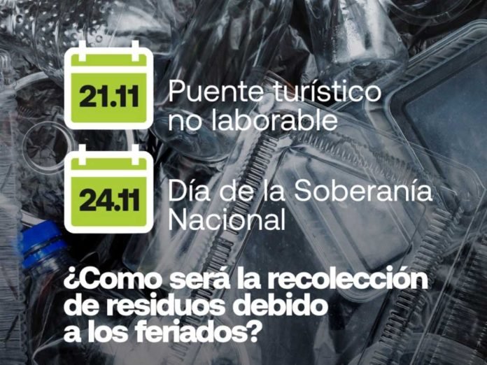Interés general Recolección normal de residuos 21/11/2025 Por Redacción SH 36 Compartir FacebookXWhatsAppEmail Desde el Municipio informaron que en el día de hoy viernes 21 de noviembre (Puente Turístico, no laborable) y el lunes 24 (Día de la Soberanía Nacional), el servicio de recolección de residuos funcionará con total normalidad en ambas fechas. Temasrecolección de residuosresiduos Compartir FacebookXWhatsAppEmail Relacionadas Recolección de residuos para Fin de Año 30/12/2025 Consorcio Girsu: Llegaron los 300 millones de la provincia 11/07/2025 El Ministro de Ambiente recorrió la Planta de Residuos 25/06/2025 Ultimas noticias El Municipio presentó «Suni», su asistente digital 23/04/2026 Golf: Los Timboes tuvieron su torneo Interno 23/04/2026 LRF Inferiores – F4: Clásico repartido 23/04/2026