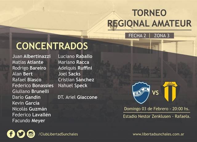 Con una profunda renovación que abarcó plantel, cuerpo técnico e incluso llegó a los cimientos mismos de la estructura, Libertad estrena el 2019 en Rafaela ante Ben Hur luego de quedar libre el fin de semana pasado. Será por la Segunda Fecha de la Zona 3 del Torneo Regional Amateur de fútbol, el cual pretenden que sea base de crecimiento y pronto regreso a la categoría superior.