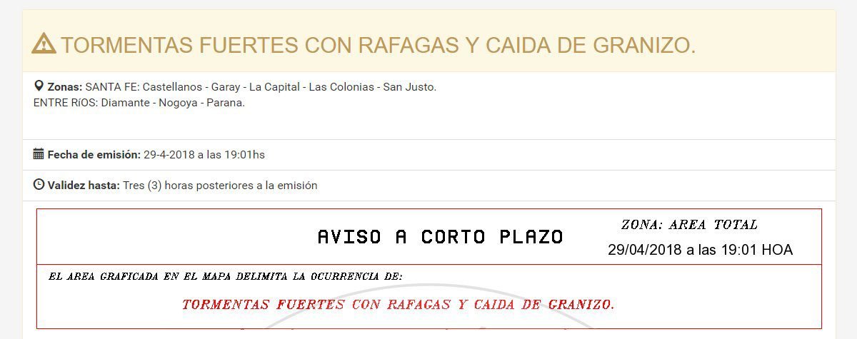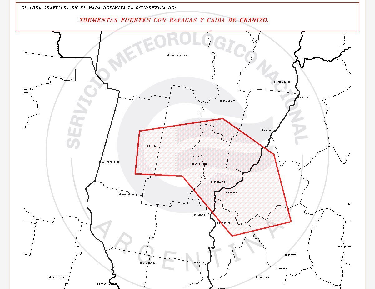 En la tarde de este domingo el Servicio Meteorológico Nacional renovó un alerta por tormentas fuertes que abarca el centro y sur santafesino.