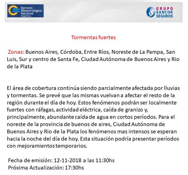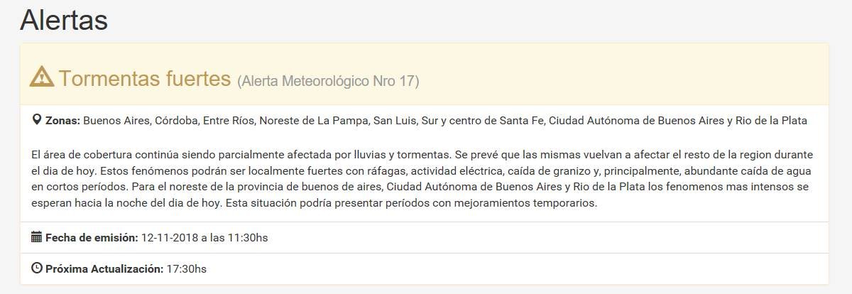 Pronóstico Renuevan anuncio de posibles tormentas fuertes y abundante caída de agua 12/11/2018 Por Redacción SH 1319 Compartir FacebookXWhatsAppEmail Así lo anunció el Servicio Meteorológico Nacional Así lo confirmó la Estación Meteorológica local Temasalerta meteorológicopronósticoservicio meteorológico nacionalSMN Compartir FacebookXWhatsAppEmail Relacionadas SAT: Alerta Naranja para las próximas horas 14/04/2026 SAT: Alerta Naranja para casi todo el lunes 05/04/2026 SAT: Alerta por lluvias para el martes 15/03/2026 Ultimas noticias AMB: Libertad volvió a ganar y sigue bien arriba 18/04/2026 LRF – F5: Libertad superó a Argentino de Vila 18/04/2026 ARB – F5: Unió logró un triunfo claro sobre Peñarol 18/04/2026