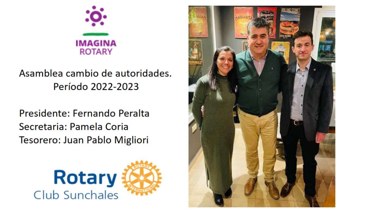 Los rotarios resolvieron renovar los cargos por un período más, en las figuras de Presidente y Secretario permaneciendo en los mismos los socios Fernando Peralta y Pamela Coria respectivamente, produciéndose el reemplazo del cargo de tesorero, asumiendo el mismo el socio, Juan Pablo Migliori, en reemplazo del Tesorero saliente, Ariel Gagliardo. Rotary Club Sunchales, se encamina en nuevo período a continuar con sus acciones de servicio en favor de la comunidad, manteniendo las puertas abiertas a aquellas personas que quieran trabajar en pos de lograr una sociedad cada vez mejor.