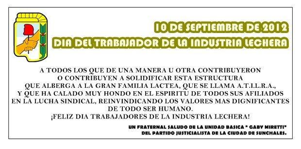 A todos los que de una manera u otra contribuyeron o contribuyen a solidificar esta estructura que alberga a la gran familia láctea, que se llama A.T.I.L.R.A., y que ha calado muy hondo en el espíritu de todos sus afiliados en la lucha sindical, reivindicando los valores mas dignificantes de todo ser humano.