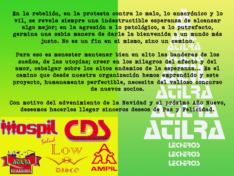 Acercamos aquí algunos saludos de amigos y anunciantes que no quieren dejar pasar esta oportunidad que nos da Internet de llegar a todo el planeta para llevar los deseos de felicidad en esta Navidad y Año Nuevo.