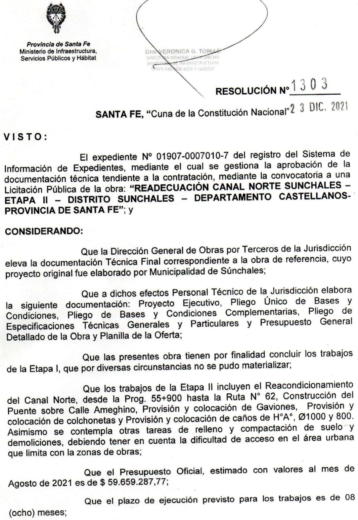 En este sentido y en respuesta al mismo y bajo resolución Nº 1303, el Ministerio de Infraestructura, Servicios Públicos y Hábitat de la provincia confirmó el llamado a licitación para retomar los trabajos. Por eso, la apertura de ofertas se realizará el próximo 12 de enero en la Casa de la Historia y la Cultura del Bicentenario de nuestra ciudad.