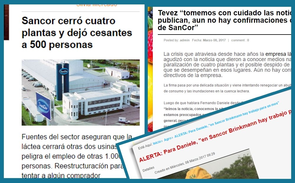 La Asociación de Trabajadores de la Industria Lechera de la República Argentina (Atilra) aclaró en un comunicado que Sancor confirmó «la necesidad de producir una reestructuración en la empresa» que implique un «achique en la cantidad de plantas, usando los mismos procedimientos que se han usado en el pasado como son los retiros voluntarios, las jubilaciones y los traslados».