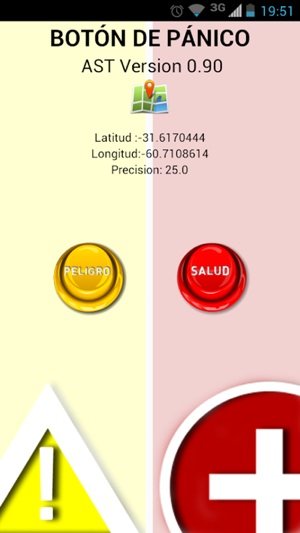 El dispositivo creado en Santa Fe permite emitir dos tipos de alertas: una de “peligro” y otra de “salud”. Ambas están claramente diferenciadas con un color amarillo y rojo con acceso directo desde el escritorio del teléfono, que debe contar con el sistema operativo Android. También es posible incorporar los botones desde el menú del teléfono. Una vez activado el botón, se emite un mensaje de texto, un mail o un mensaje de Facebook a un contacto predeterminado. Además, brinda la dirección aproximada desde donde se emitió el pedido de auxilio mediante un link que remite a Google Maps. Esa ubicación tiene un margen de error de aproximadamente 50 metros y se detecta mediante una geolocalización inversa que, de todas maneras, es bastante precisa.