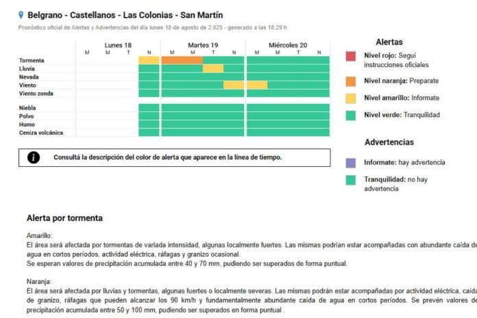 El Servicio Meteorológico Nacional emitió una actualización acerca de lo que podría acontecer en el transcurso de las próximas horas. En este sentido, elevó de Amarillo a Naranja el Alerta por posibles Tormentas Fuertes que pueden llegar a registrarse en nuestra región en la madrugada y mañana de este martes.