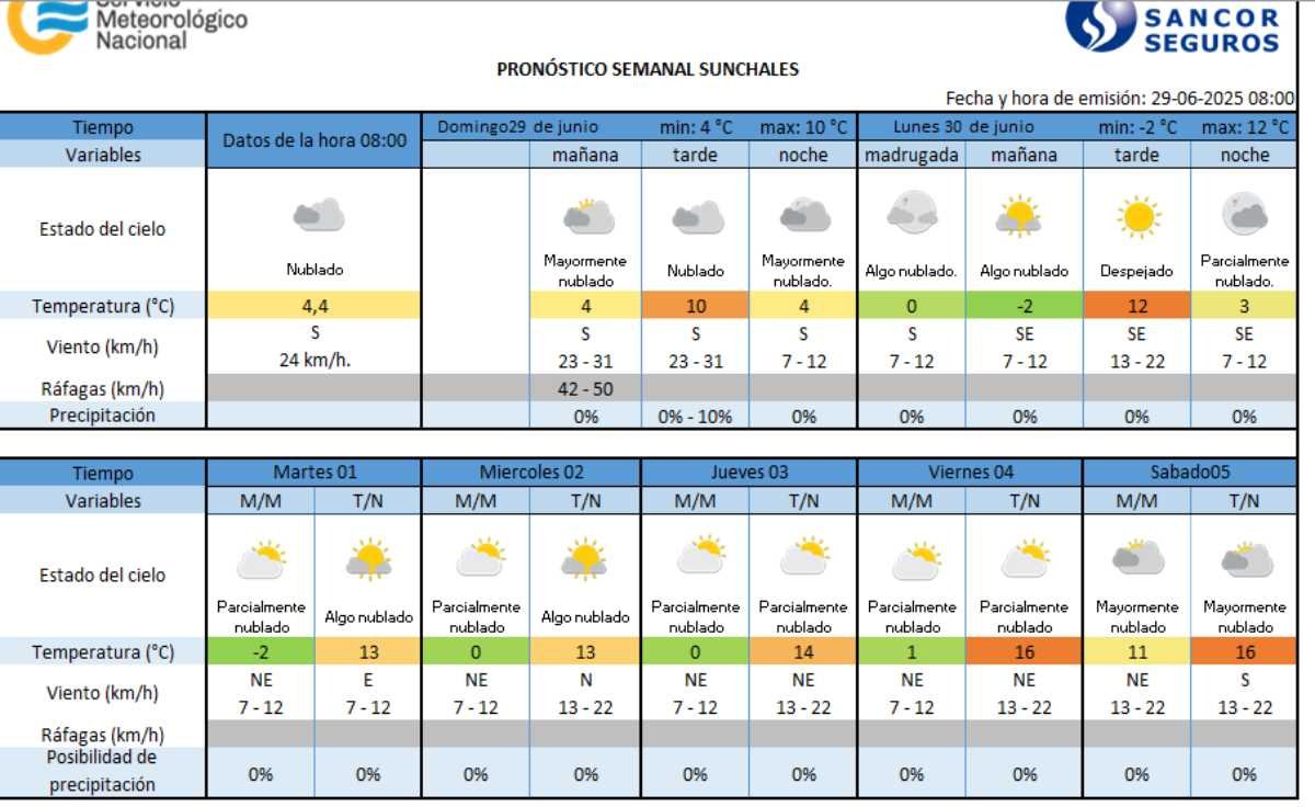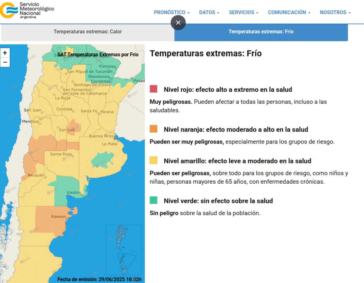 El Servicio Meteorológico Nacional emitió para el inicio de la semana un Alerta Amarillo ante el posible registro de temperaturas bajas que se darían en toda la región.