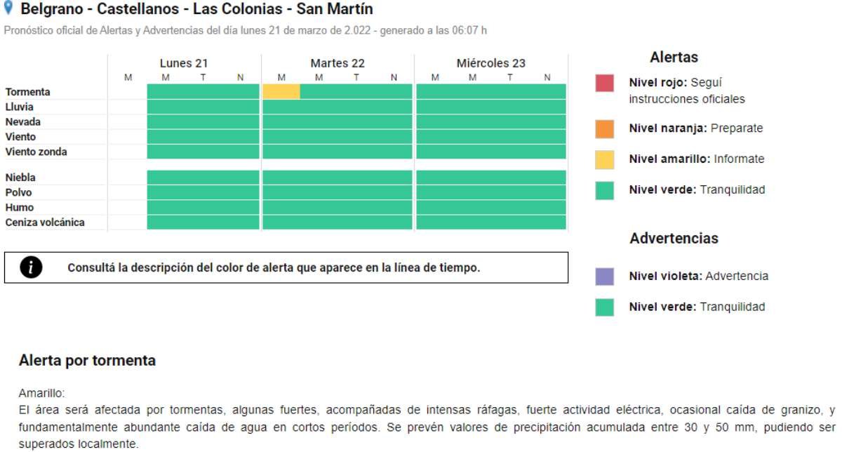 El Servicio Meteorológico Nacional ha emitido un Alerta Amarillo para la mañana de este martes. A través de este informe, se anticipa la posible ocurrencia de tormentas fuertes, las cuales pueden estar acompañadas de ráfagas y actividad eléctrica, entre otras particularidades.