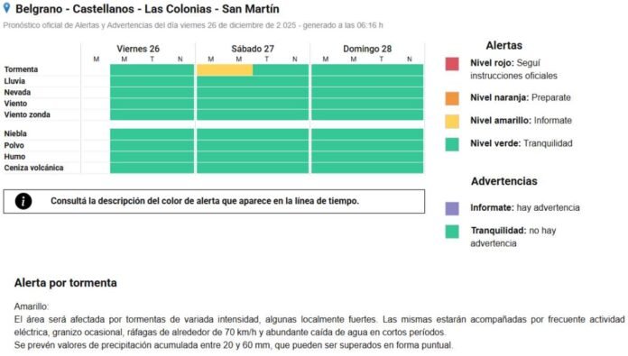 El Servicio Meteorológico Nacional anticipa para la jornada de mañana sábado, desmejoramiento y tormentas que pueden llegar a ser fuertes en nuestra zona. Todo comenzaría en la madrugada y se extiende hasta la mañana, aunque la inestabilidad continuaría unas horas más.