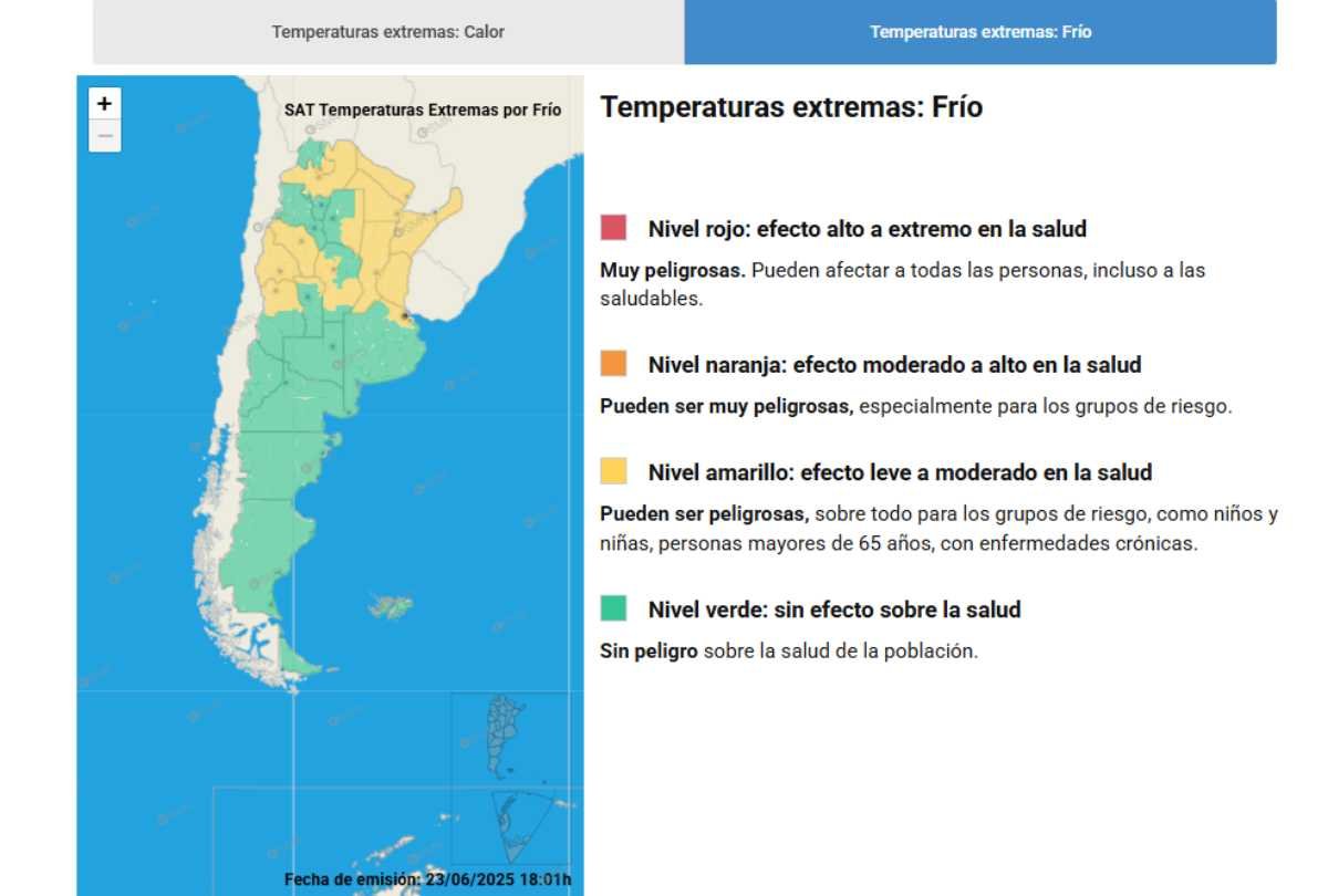 SAT: Alerta Amarillo por bajas temperaturas