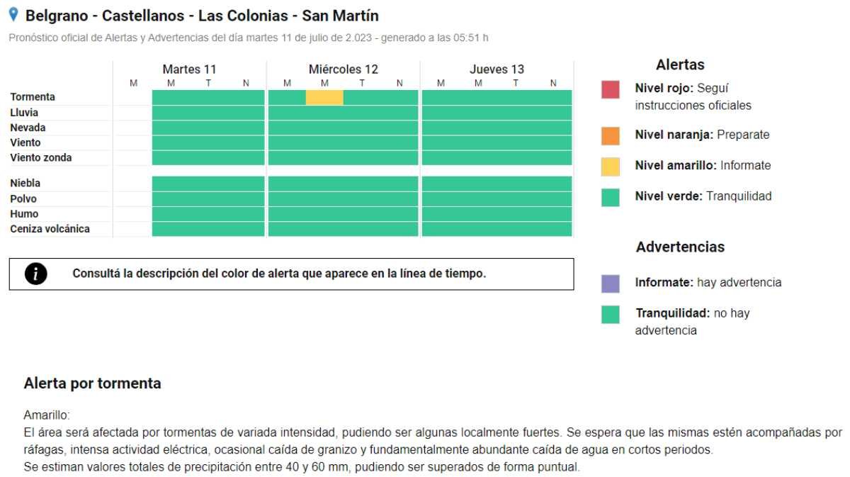 El Servicio Meteorológico Nacional emitió un Alerta Meteorológico amarillo ante la posible ocurrencia en la madrugada de este miércoles de tormentas y lluvias aisladas.