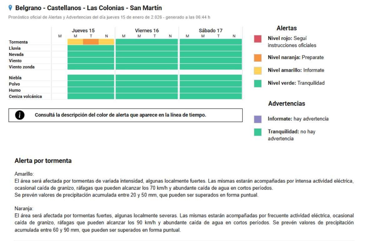 Luego de que, tal como se anticipara, en las primeras horas de hoy jueves la ciudad tuviera una importante tormenta, con un acumulado de 42 milímetros y mucha actividad eléctrica, el Servicio Meteorológico Nacional no solamente sostiene el Alerta Temprano sino que lo ha elevado a nivel Naranja.
