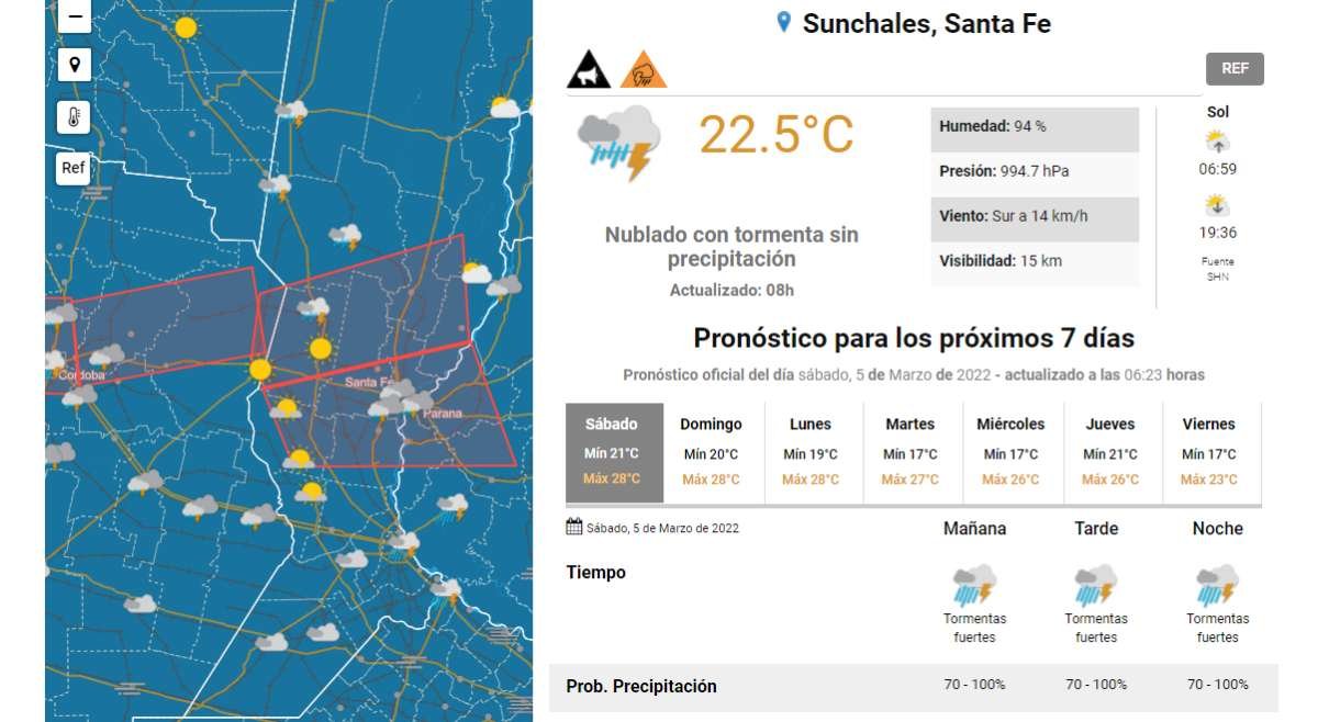 Pronóstico SAT: Alerta Naranja para la tarde y a Corto Plazo para la mañana 05/03/2022 Por Redacción SH 140 Compartir FacebookTwitterWhatsAppEmail El Servicio Meteorológico Nacional ha anticipado un más que complejo sábado. Ahora, rige un Alerta a Corto Plazo y a la vez está vigente un Alerta Amarillo y Naranja para la jornada de hoy. Aquí repasamos la información: TemasAlerta NaranjapronósticoSATSMN Compartir FacebookTwitterWhatsAppEmail Relacionadas SAT: Alerta Naranja para esta noche 18/02/2026 SAT: Anticipan lluvias importantes 14/02/2026 SAT: Inestabilidad y Alerta por tormentas 05/02/2026 Ultimas noticias Medidas alternativas para tres sunchalenses que se resistieron al accionar policial en el Carnaval 18/02/2026 Carnavales 2026: Una propuesta que se sostiene a futuro con entrega y colorido 18/02/2026 SAT: Alerta Naranja para esta noche 18/02/2026
