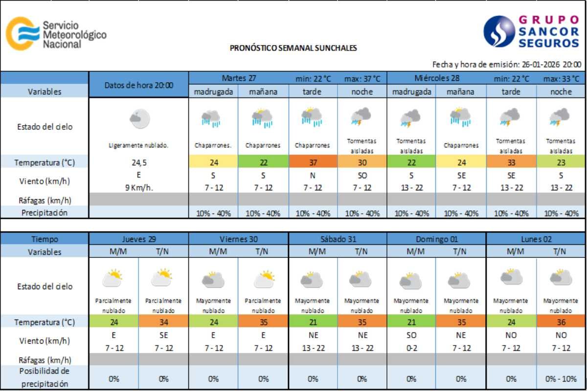 El Servicio Meteorológico Nacional sostiene para las próximas jornadas la vigencia de un Alerta Temprano ante la persistencia de altas temperaturas. El mismo tiene el carácter de Alerta Amarillo, por lo que se recomienda adoptar las medidas de prevención pertinentes.
