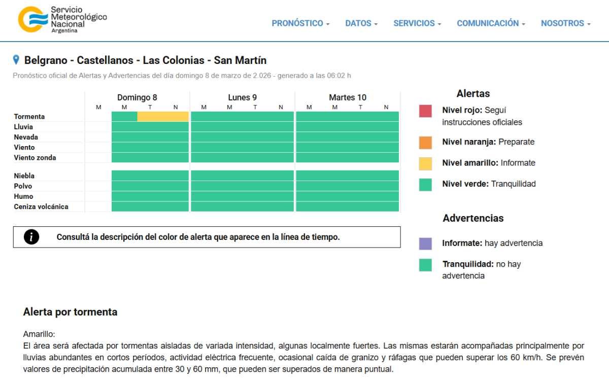El Servicio Meteorológico Nacional emitió un Alerta Temprano, anticipando la posible ocurrencia de tormentas importantes para la tarde de hoy en nuestra región.