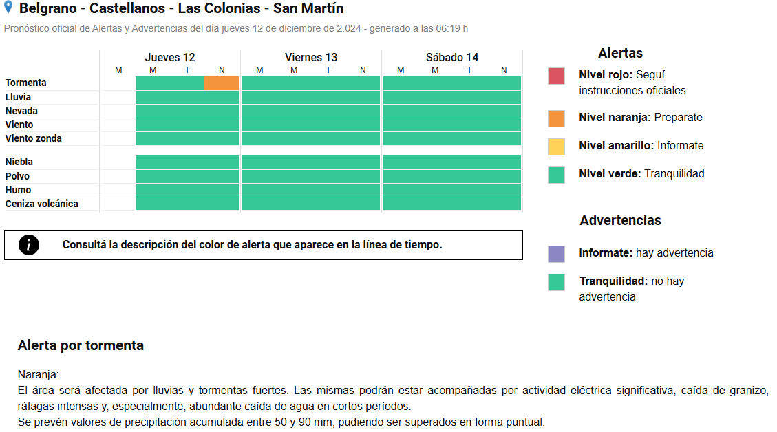 El Servicio Meteorológico Nacional ayer emitió un Alerta Amarillo ante la posible ocurrencia de tormentas fuertes para la noche de hoy. No obstante, en las últimas horas, actualizó el pronóstico para elevarlo a Naranja, haciendo así que las características del fenómeno que podría desatarse en las próximas horas sea más fuerte.