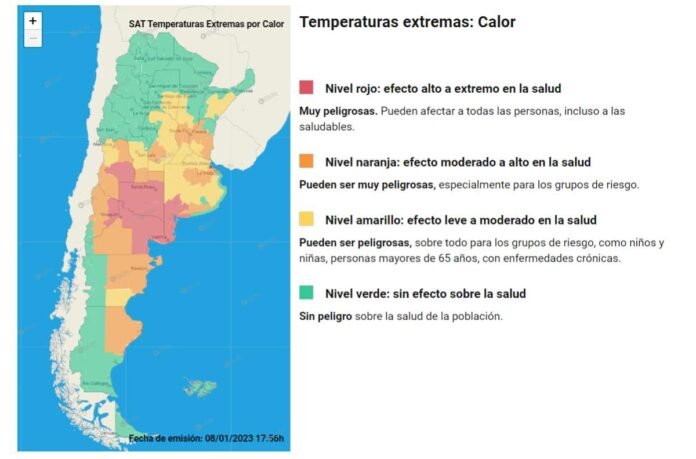 El Servicio Meteorológico Nacional ha modificado el Alerta por altas temperaturas. La continuidad de las mismas en toda la provincia hizo que ahora, el anticipo sea naranja y ya no amarillo, previéndose además el sostenimiento de estas temperaturas elevadas.
