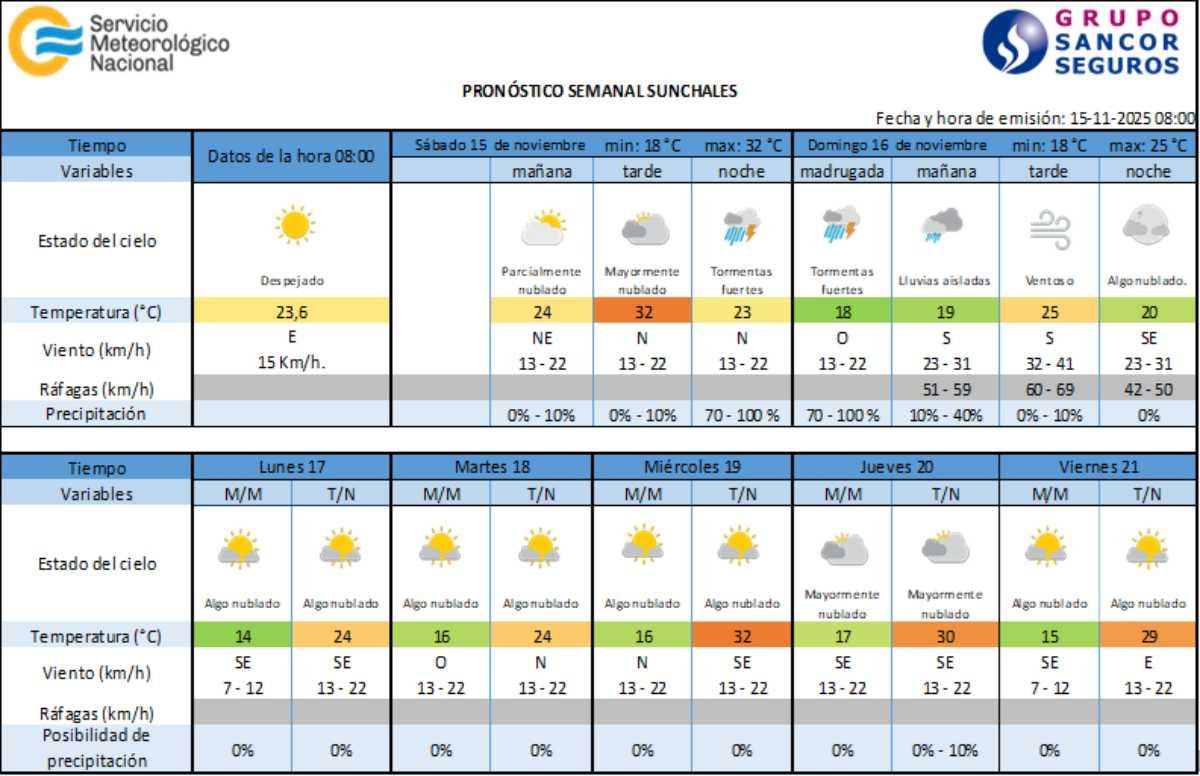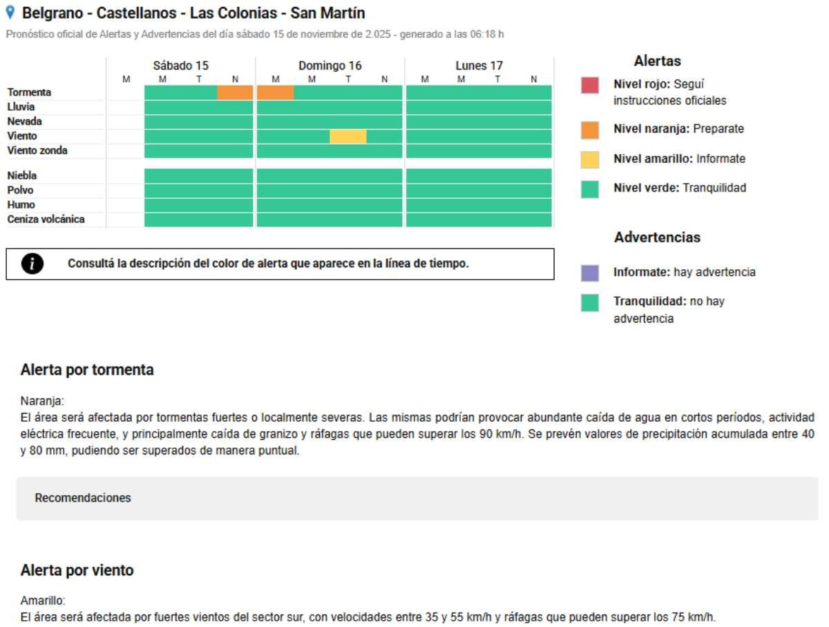 Además, se incluyó un Alerta Amarillo por Vientos Fuertes para la tarde de mañana domingo.