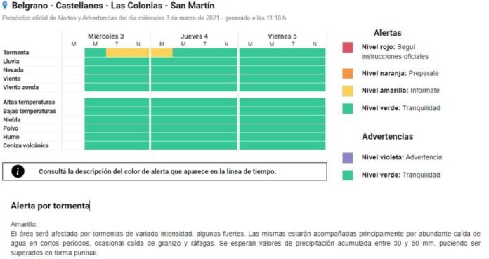 Desde la Estación Meteorológica local informaron que está vigente un Alerta Amarillo para la tarde y noche de hoy, así como también la madrugada de mañana jueves. Esto se debe a la posible ocurrencia de tormentas fuertes, con eventos de variada intensidad.