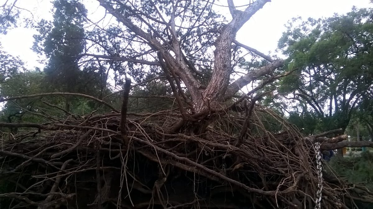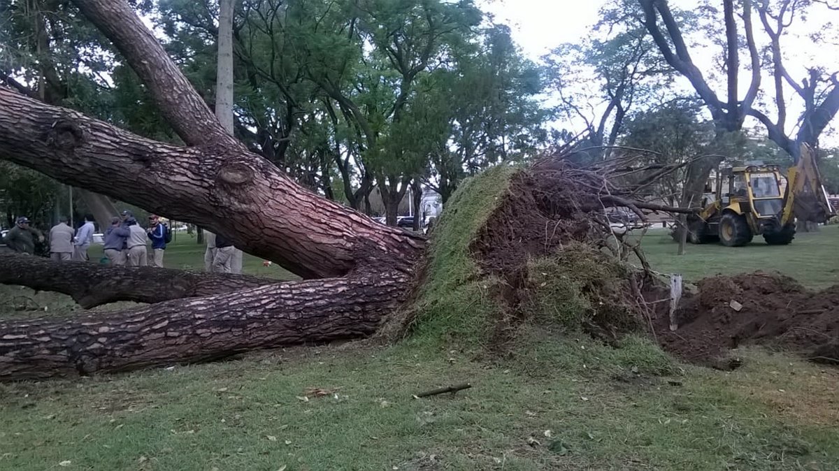 Como consecuencia del temporal de ayer, en combinación con altas napas freáticas y las recientes precipitaciones, el añejo retoño del pino de San Lorenzo, ubicado en Plaza Libertad, se derrumbó.