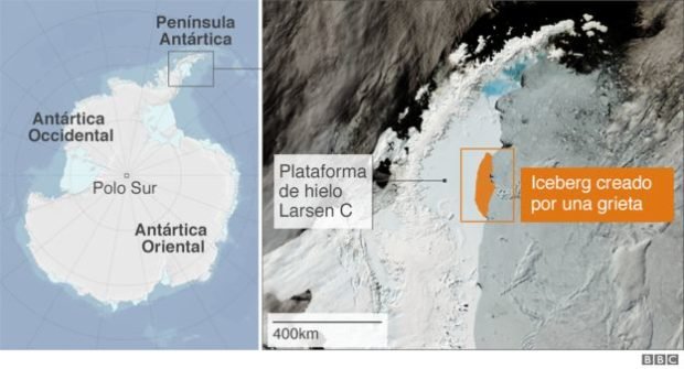 Expertos del proyecto Midas, un grupo de investigación británico que estudia a Larsen C, informaron que el desprendimiento se produjo entre el lunes y miércoles, cuando 5.800 kilómetros cuadrados de hielo se separaron de la plataforma.